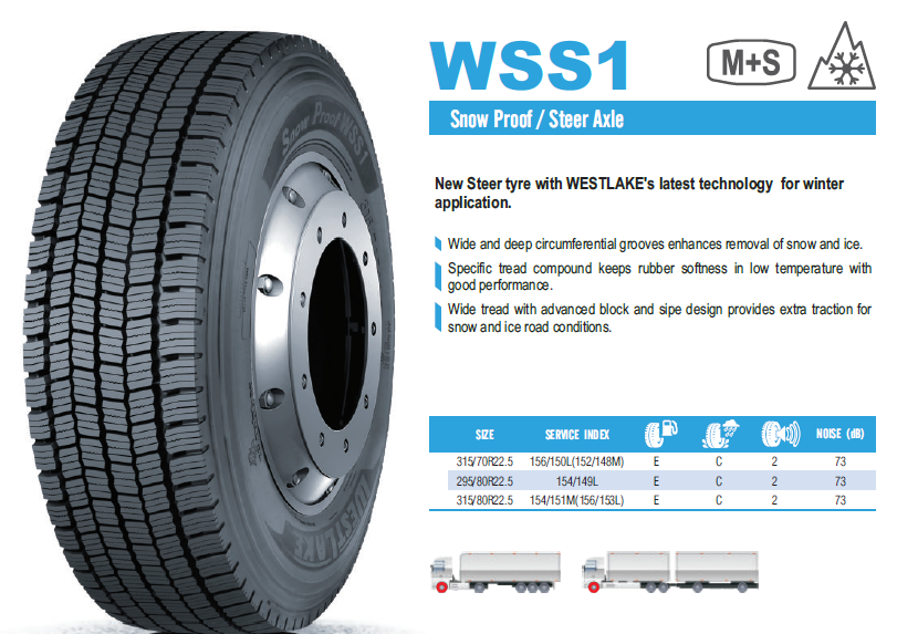 Extremt vinterdäck styraxel för regional, lokal- och fjärrtrafik Ett riktigt bra styrdäck med WESTLAKES senaste teknologi för Nordens krävande vintervägar. Speciell gummiblandning för att hålla gummit mjukt och följsamt med bibehållet grepp även i mycket låga temperaturer.